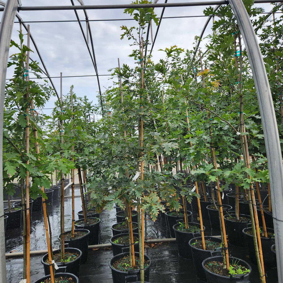 White oak is known for its soft textured leaves, also for its bright red fall colour with a slight purple tinge to the colour.